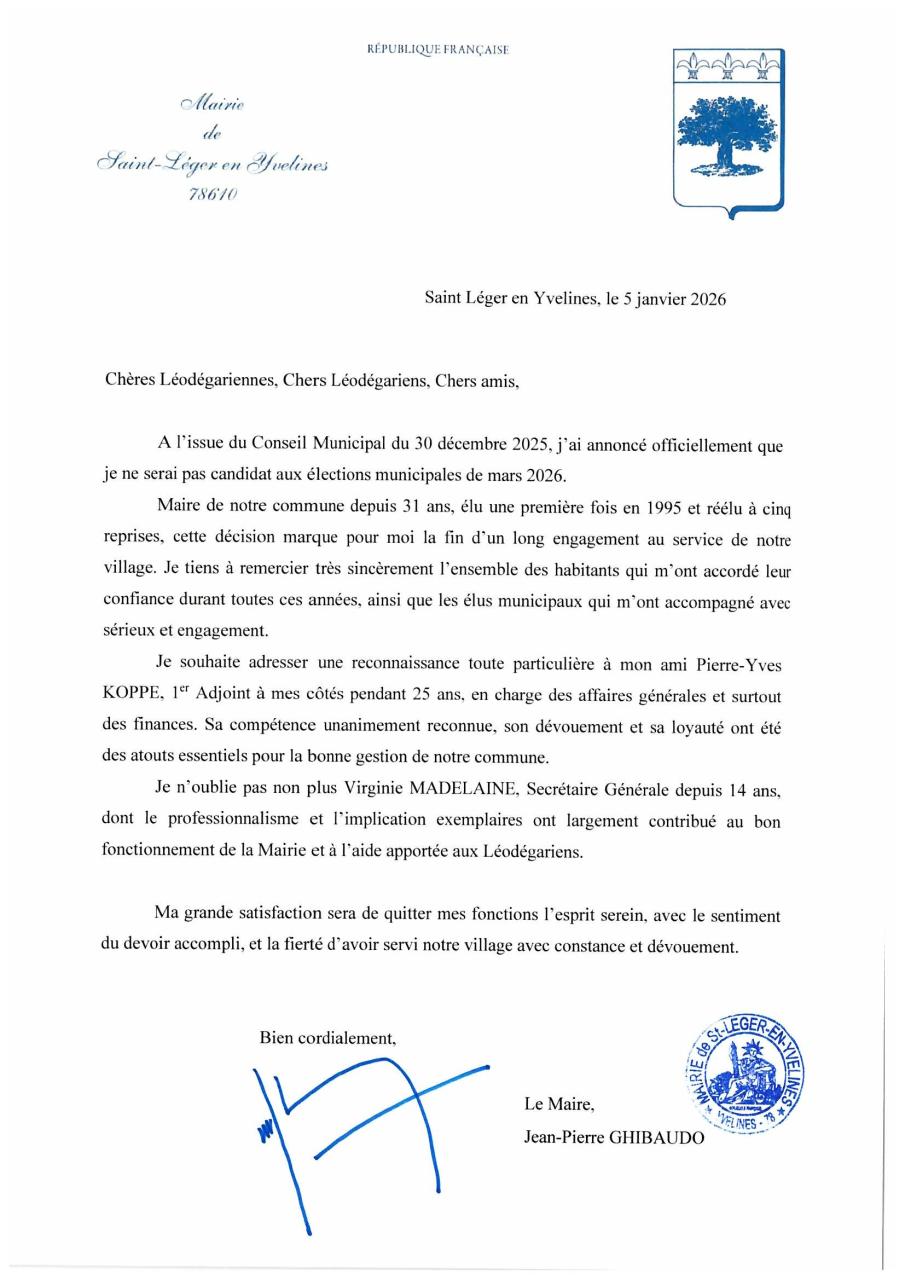 Veuillez trouver ci-joint un courrier du Maire de Saint Léger en Yvelines.
